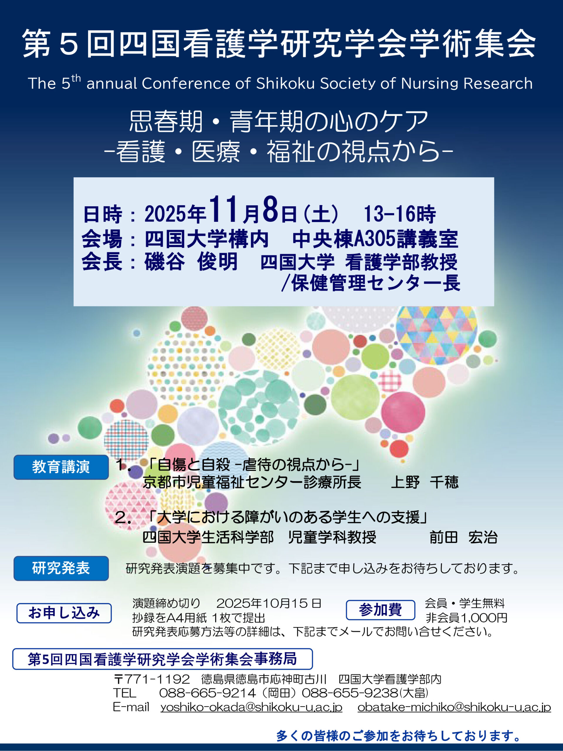 • 学術集会長:磯谷 俊明 四国大学看護学部教授/保健管理センター長